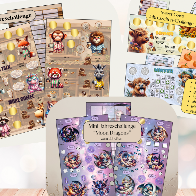 Lust auf eine Challenge voller Überraschungen? Dann sind unsere (Mini-)Jahreschallenges genau das Richtige! Du kannst rubbeln, würfeln, abstreichen, Lose ziehen, rechnen – und sogar mit Datum oder Temperatur sparen. Klingt verrückt? Ist es auch. Aber auf die beste Art und Weise!