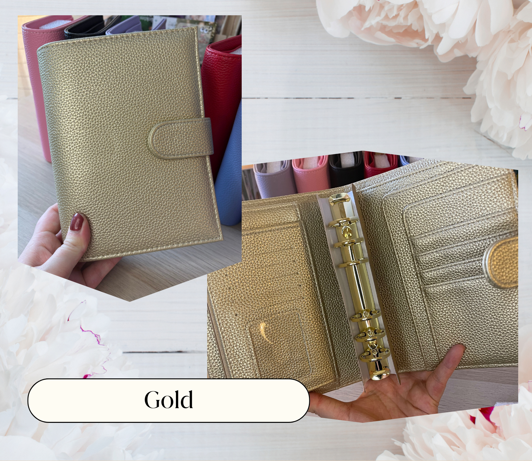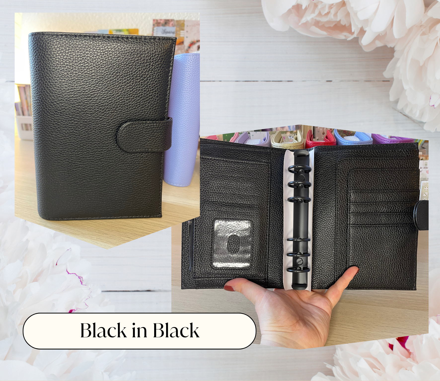 Er hat goldene Akzente und 2,5cm Ringe. Der Black in Black Binder hat schwarze Hardware!