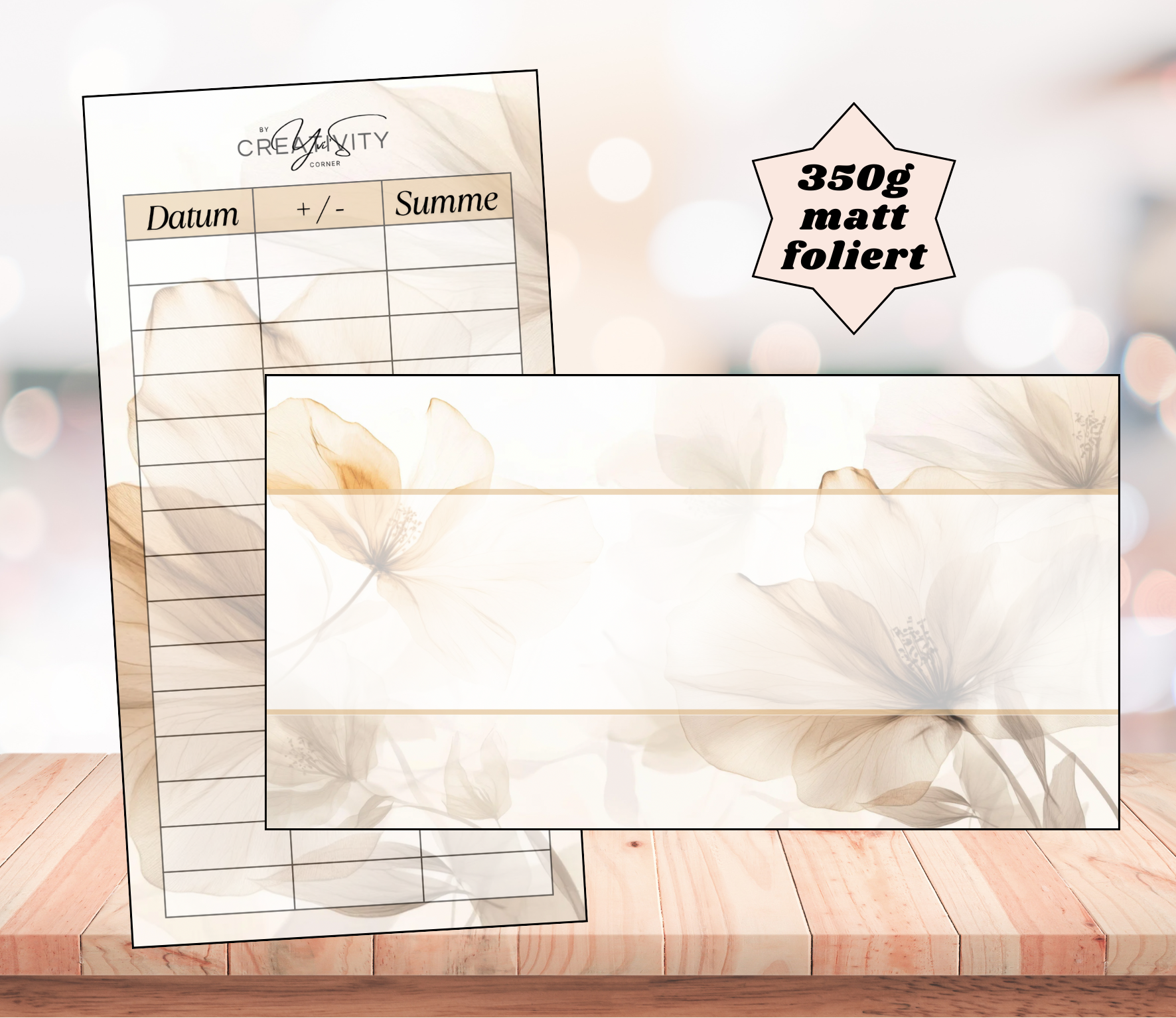 Gedruckt wird das Dashboard auf hochwertigem 350g Papier und der Tracker ist auf der Rückseite.