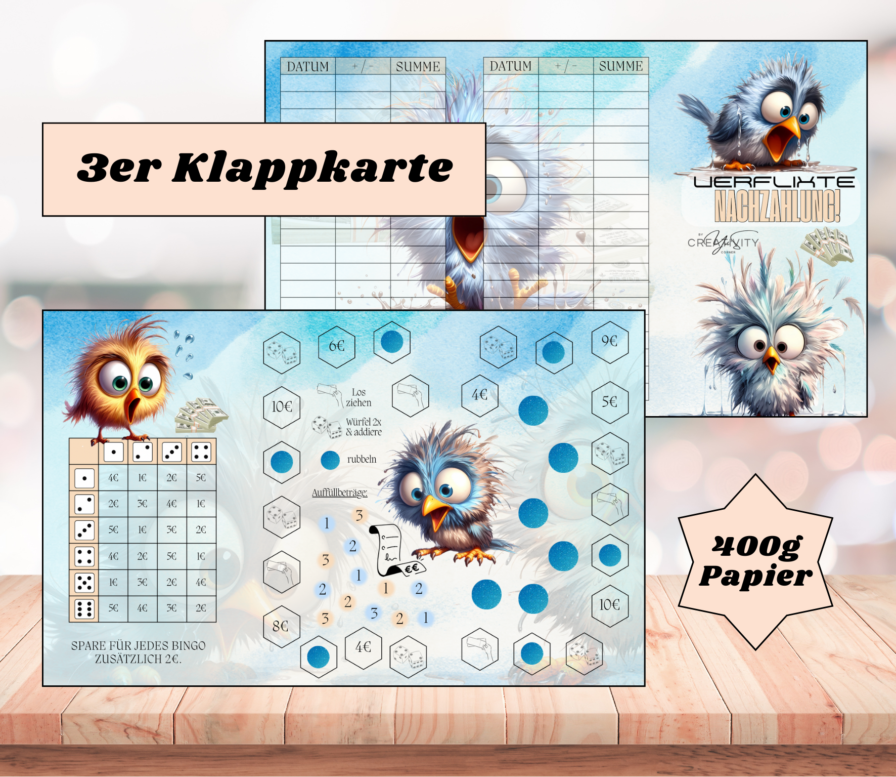 Sparchallenge "Nachzahlung" Triple-Klappkarte, A6, 400g Papier