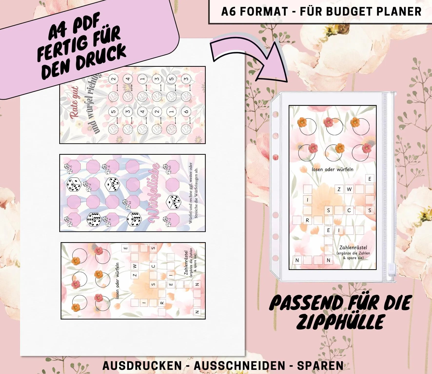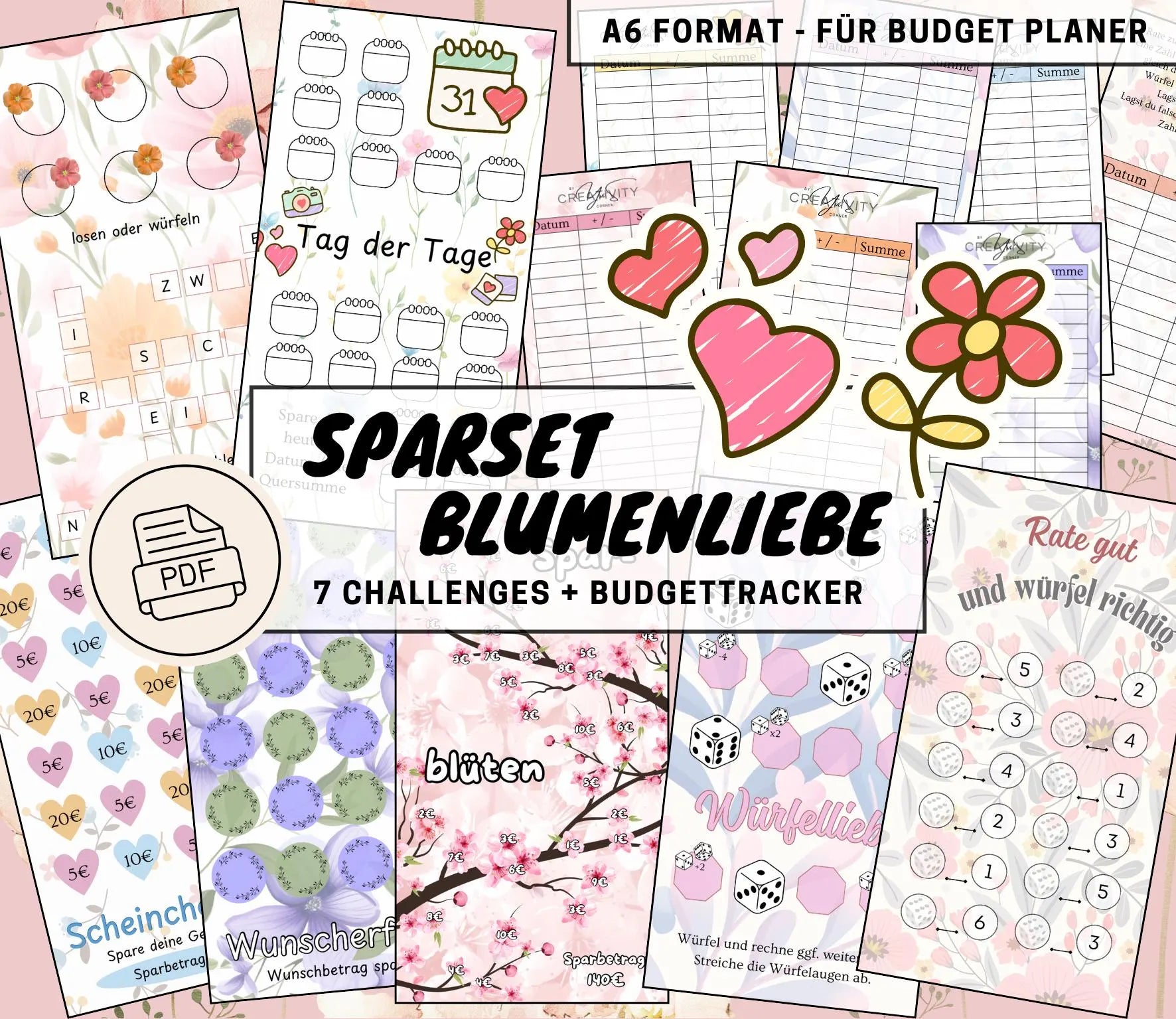 Sparchallenge Set “Blumenliebe”, A6 selbst Ausdrucken💡KEIN physischer Artikel💡