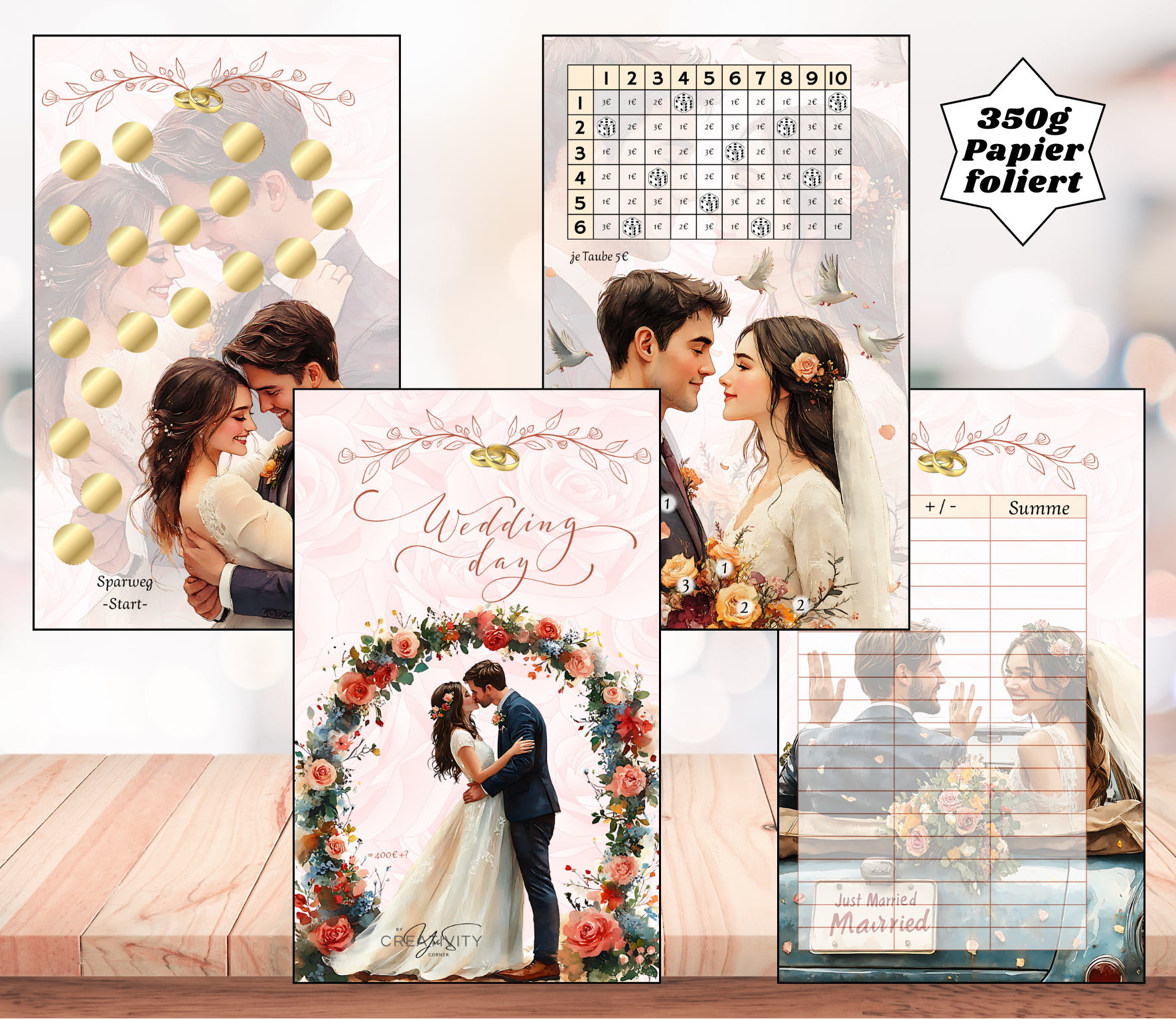 Sparchallenge-Set "Hochzeitstag", gelocht und matt foliert für A6, Papier 350g