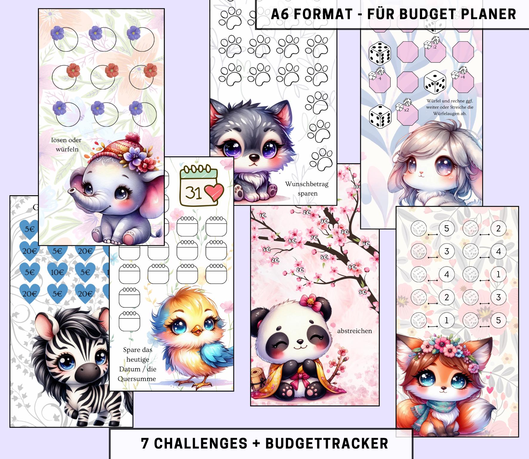 Sparchallenge Set “Sweet Animals”, A6 selbst Ausdrucken💡KEIN physischer Artikel💡