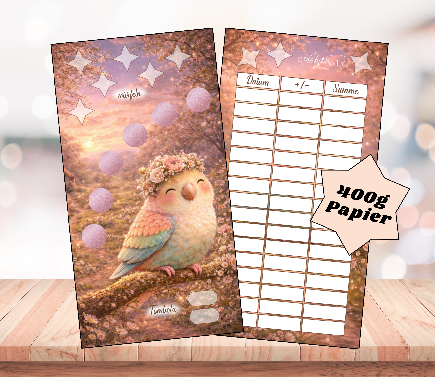 Gedruckt wird die Sparchallenge auf hochwertigem Papier mit 400g und Tracker sind mit aufgedruckt.