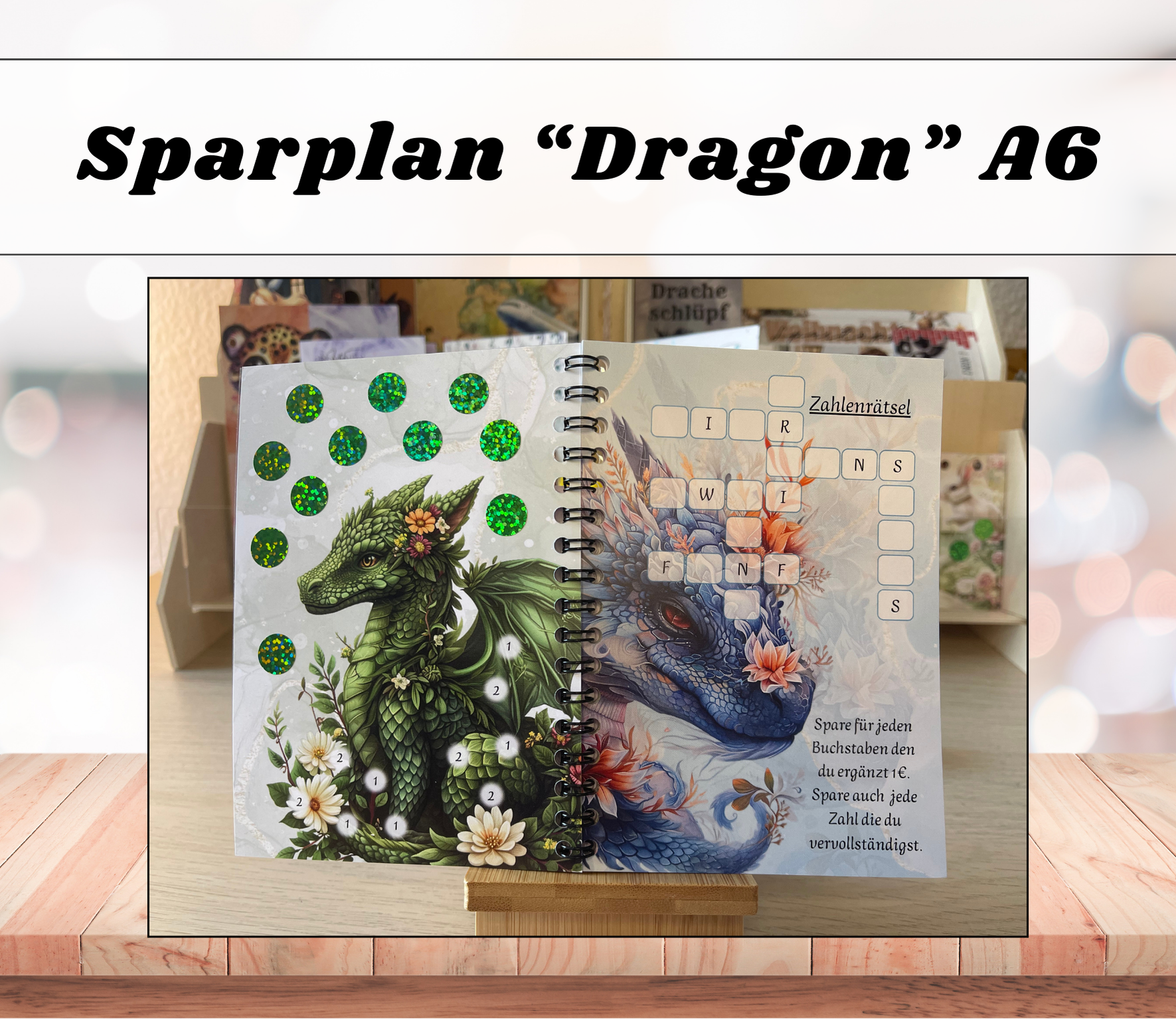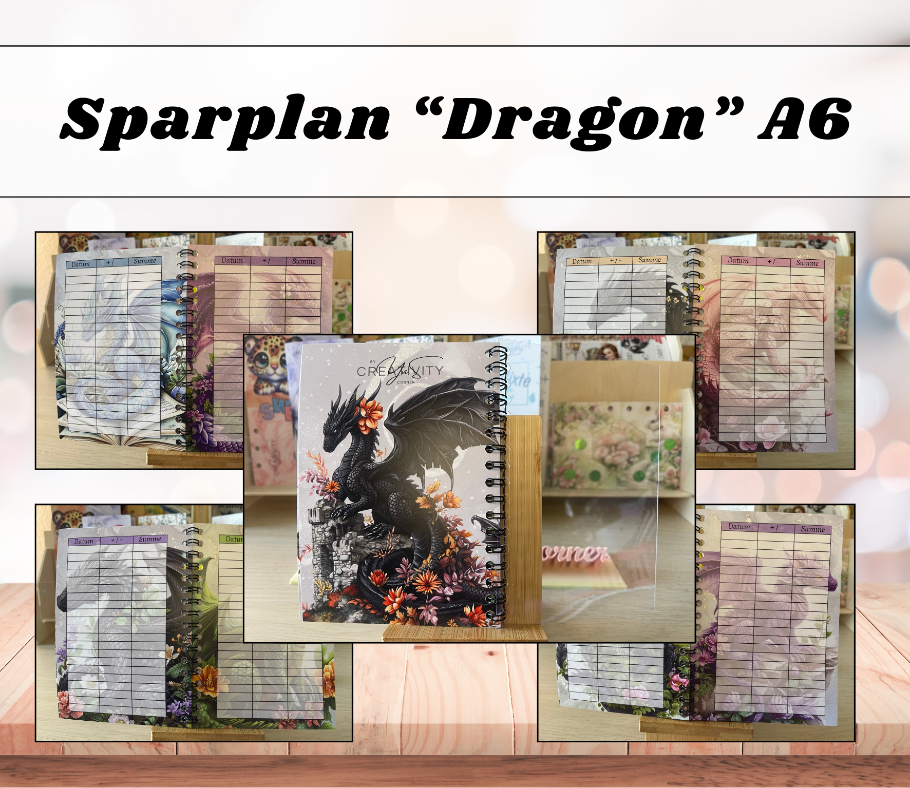 Sparbuch „Dragon“ + Deckblatt, A6, Spiralbindung